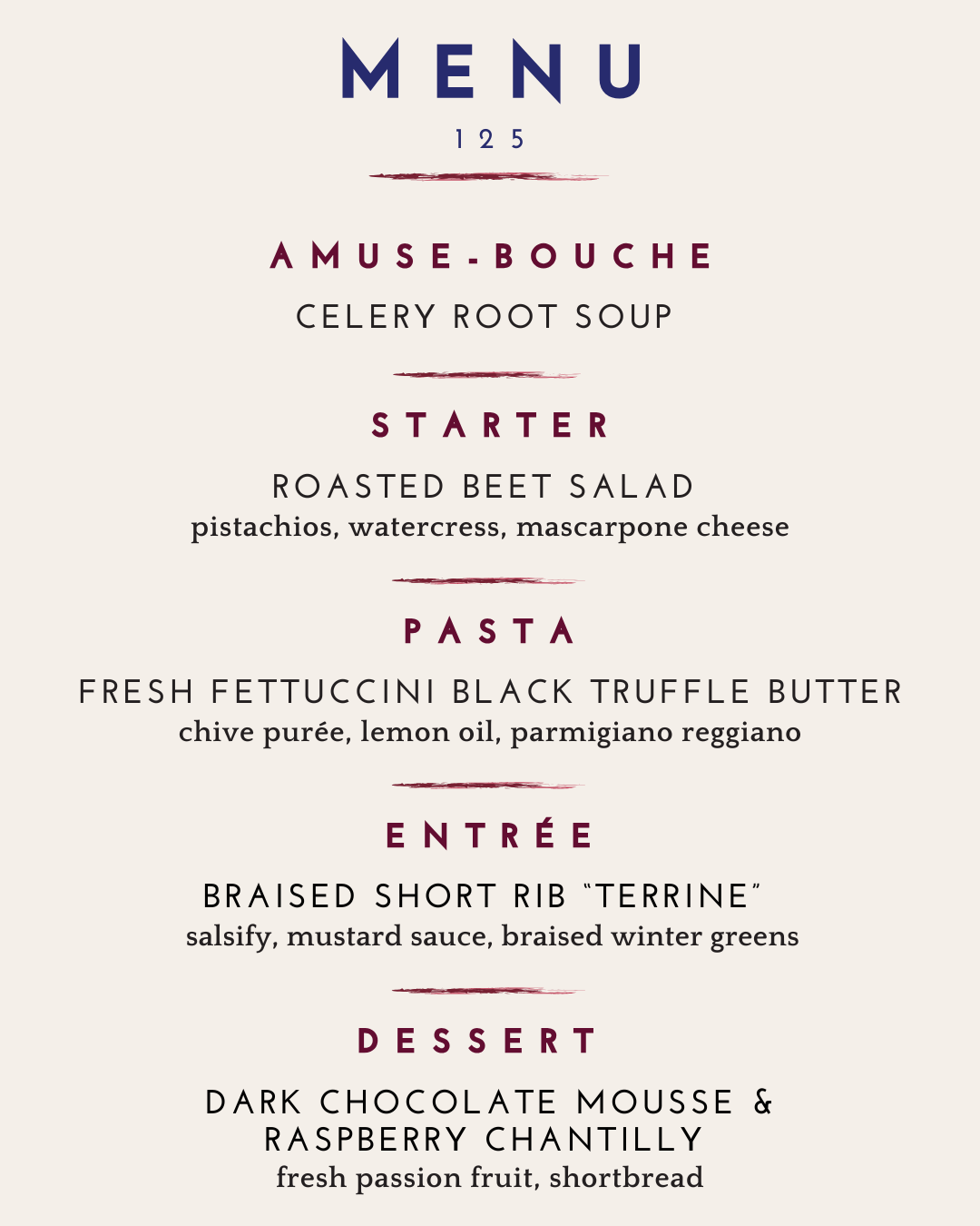 This prix fixe menu is $125 per person.